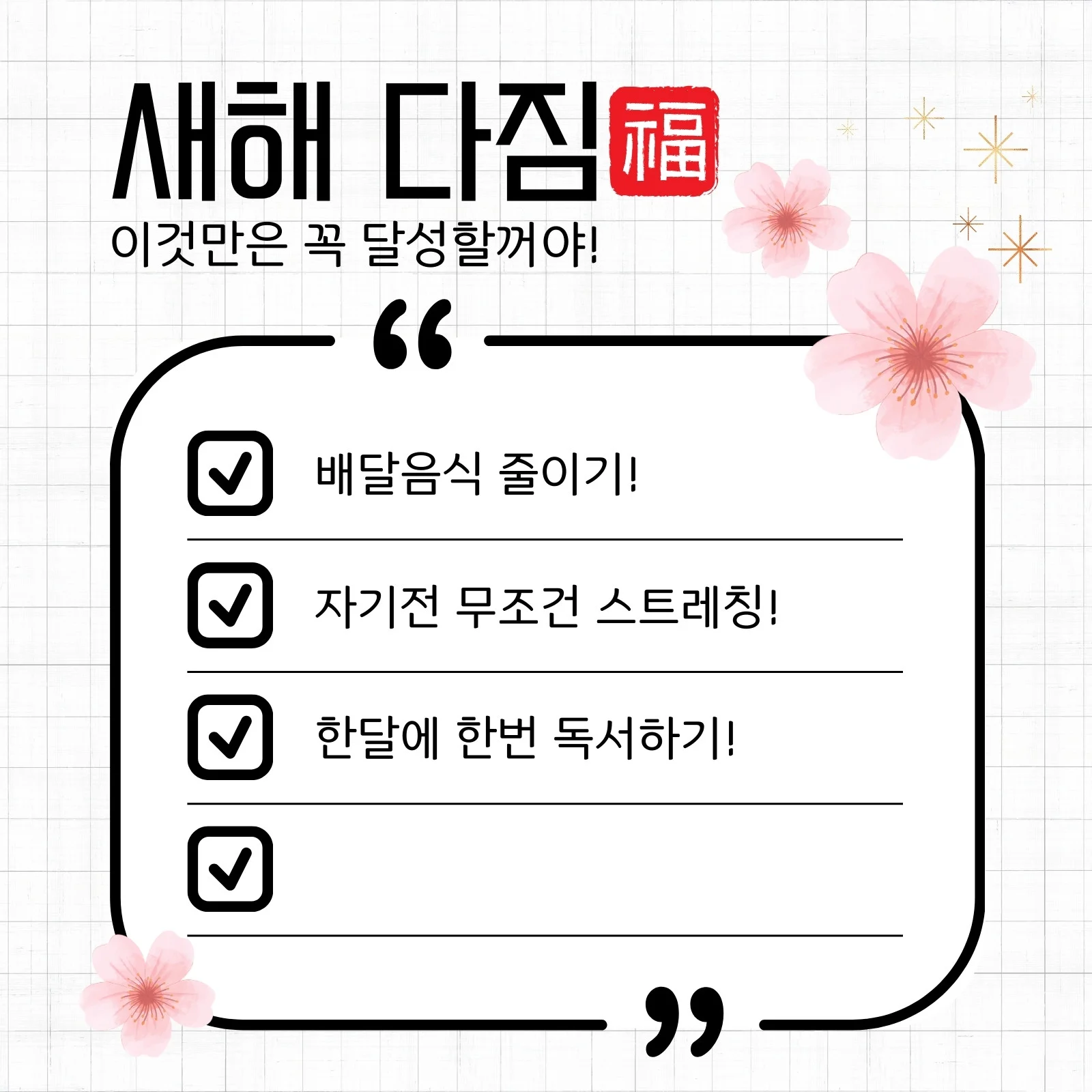 작은 다짐 하나가 쌓이면 1년은 생각보다 빠르게 달라집니다. 그리고 그 변화는 멀리 있지 않습니다. 지금 이 글을 읽는 순간부터 이미 시작되고 있습니다.